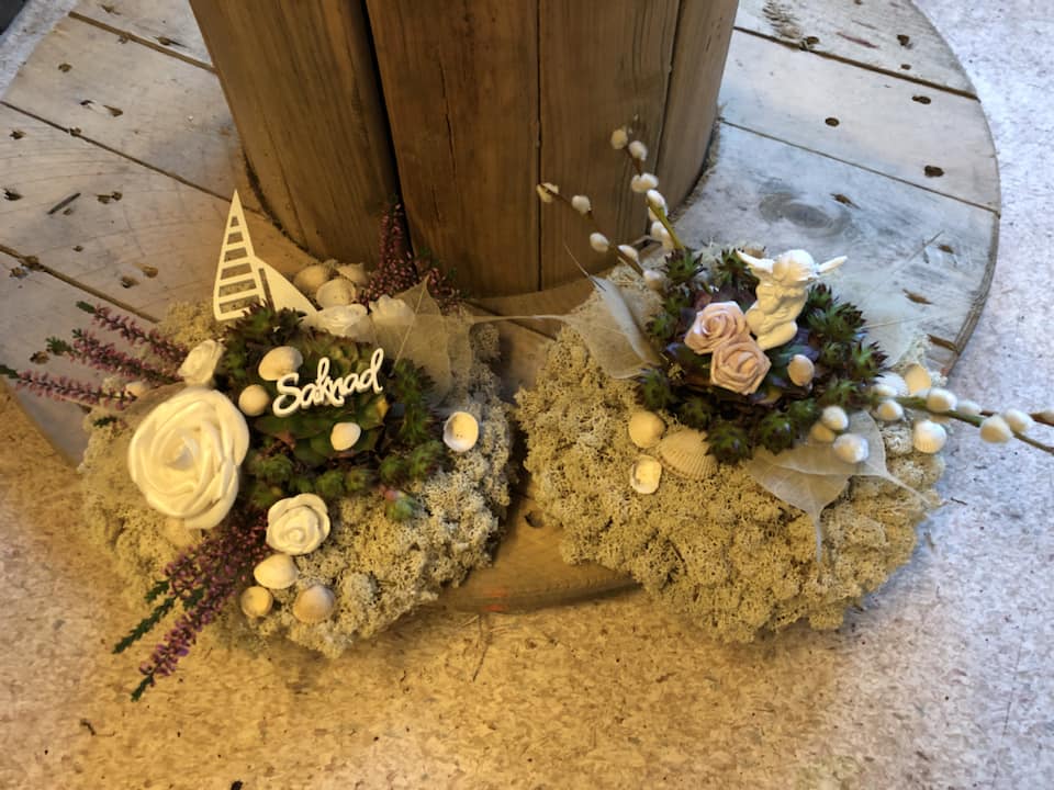 Vi skapar alla gravsmyckningsbinderier på egen hand, allt ifrån buketter och kransar till dekorationer.